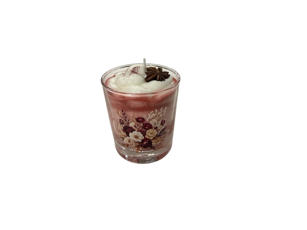 -krásná svíčka ve skle s dekorací badyánu, ozdobené nálepkou jemných květin