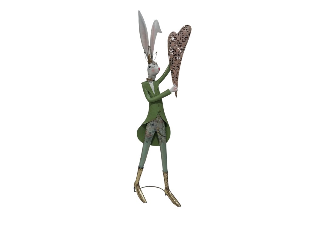 Zajíci jsou vyrobeni z kvalitního plechu a zdobeni detailním zpracováním, které podtrhuje jejich jedinečný charakter. Díky své velikosti působí výrazně a slavnostně – perfektně se hodí jako hlavní dekorace na komodu, ke vstupním dveřím, na verandu nebo jako součást velikonoční výzdoby.